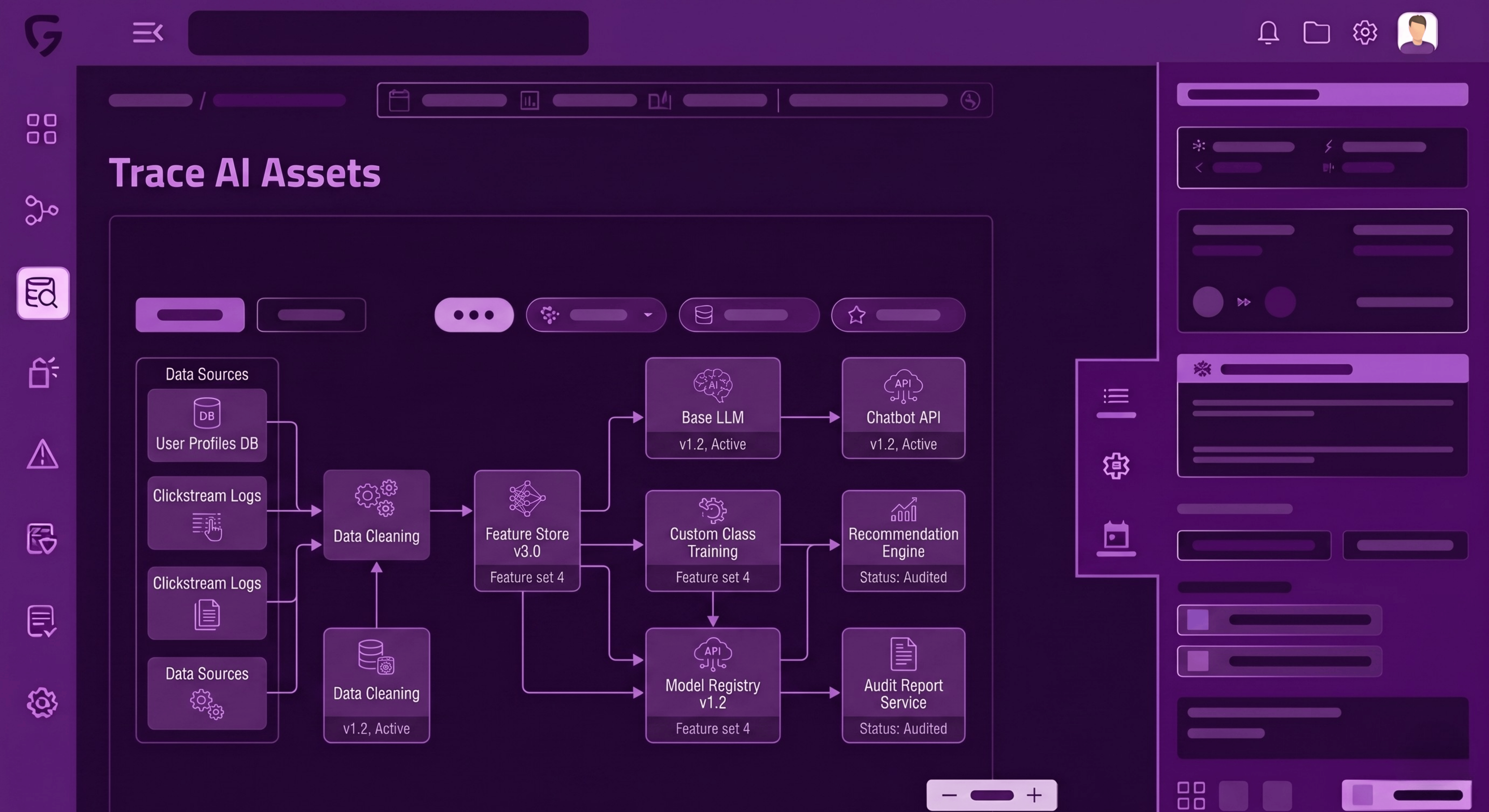 Organizations often cannot see how AI assets connect to sensitive data, identities, systems, and external services. Without lineage, risk paths remain undetected.