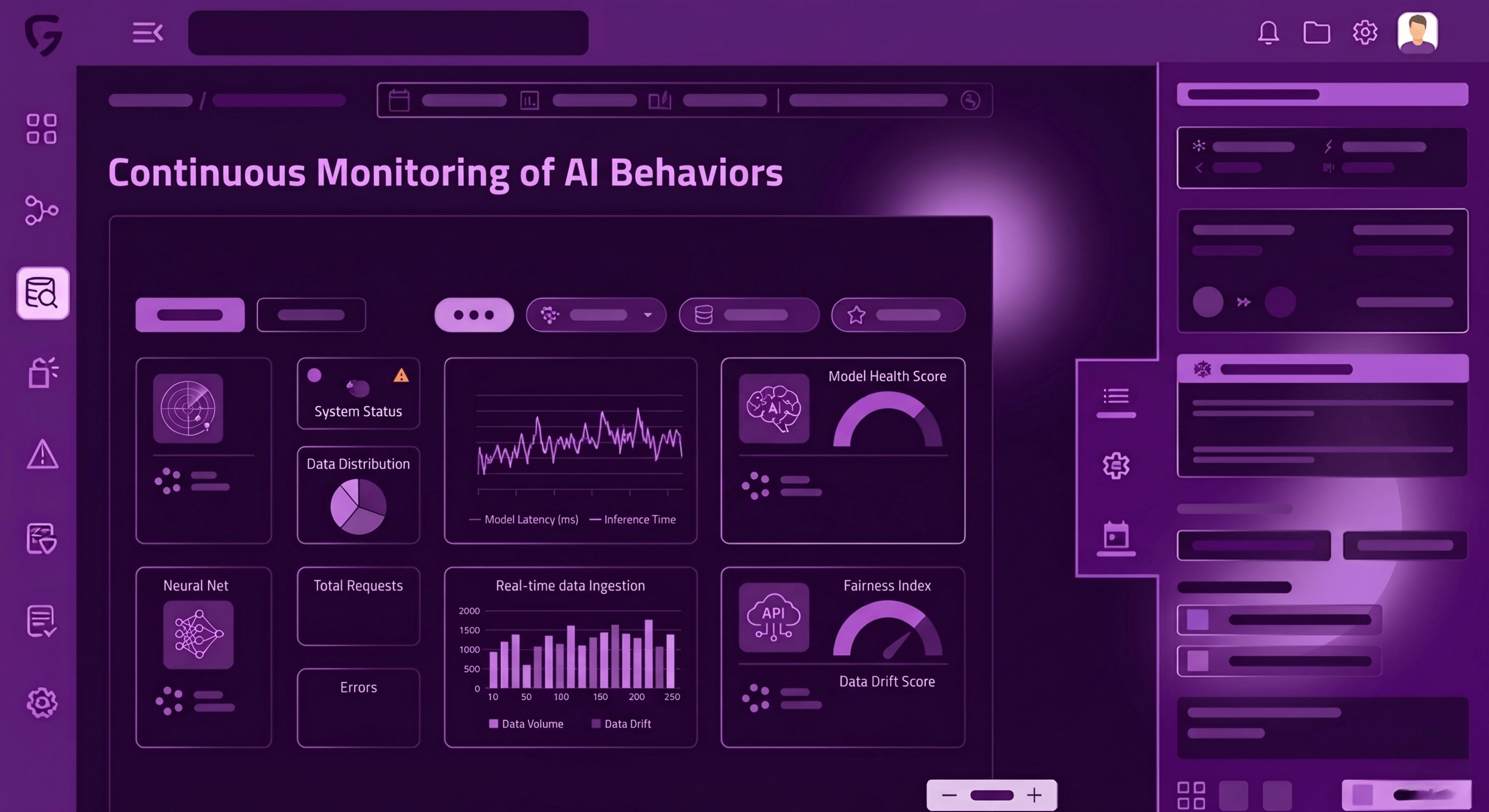 Continuously monitor AI behavior, usage patterns, performance, and changes over time. Detect drift, misuse, abnormal activity, and performance issues before risk escalates.